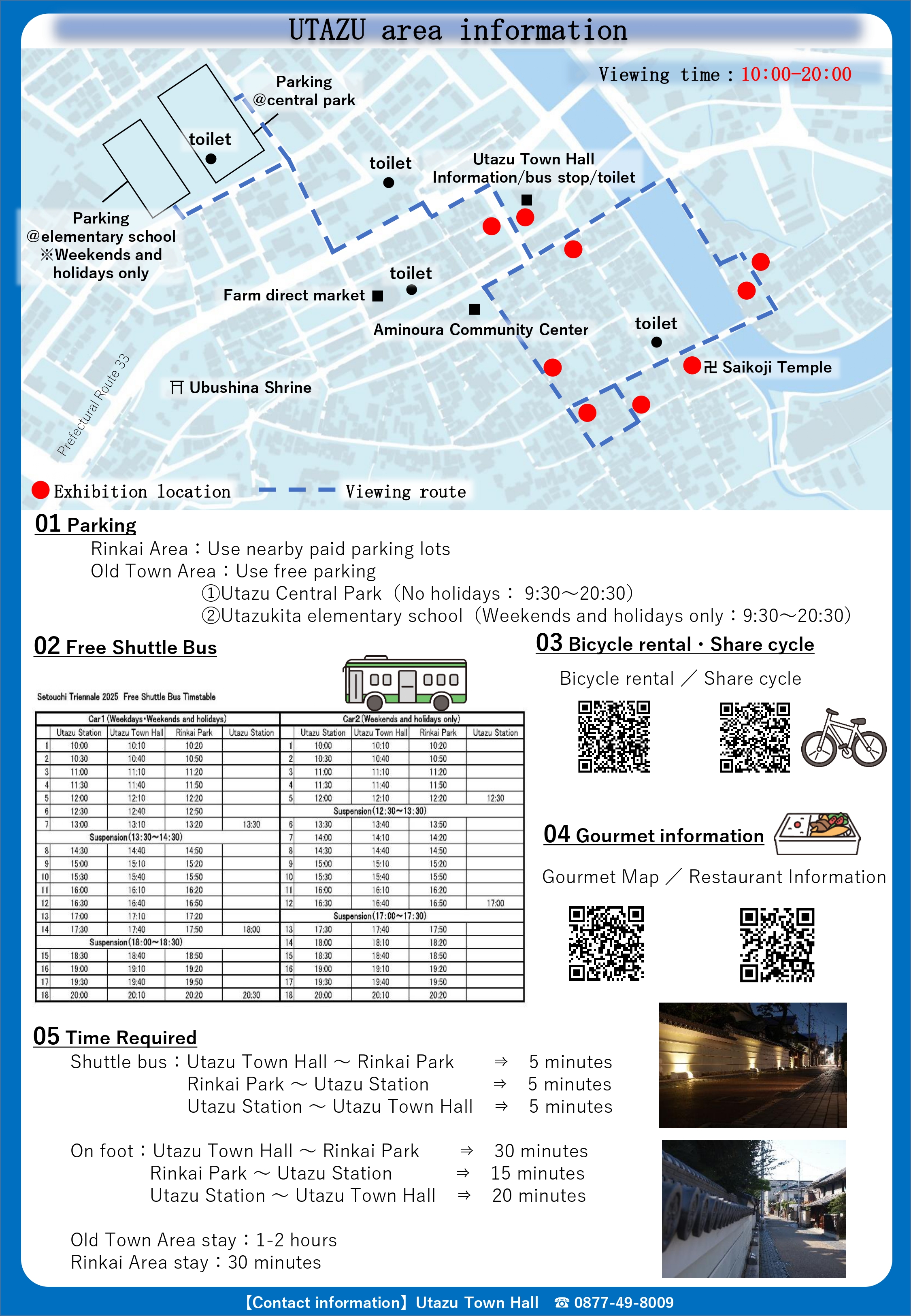 会期中は宇多津町役場北館前に開設される総合案内所や役場窓口、観光施設等で配架していますので、是非ご覧ください。(紙冊子は納品後、順次配架します。)
