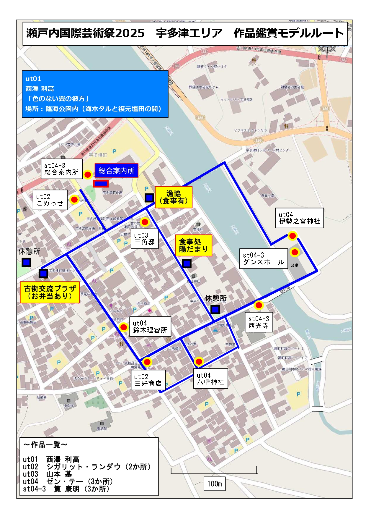 瀬戸内国際芸術祭の宇多津エリアにおける作品鑑賞のおすすめモデルルートを作成しました。